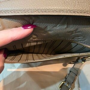 stunning Louis Vuitton pochette metis mm empreinte leather logo crossbody bag in a stylish beige color. Perfect for any occasion, offering both luxury and functionality. gold hardware. comes with box, dustbag and papers. excellent condition very lightly worn.