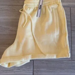 NEW Pink Victoria Secret Yellow ivy fleece rolled hem short NWT