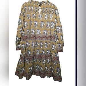 Victoria Dunn Olive and Blue Floral Dress EUC Medium PTP 24 Length 38