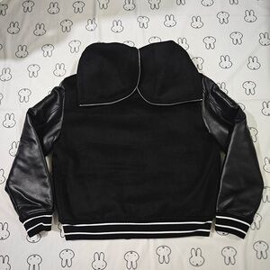 Sleeves are made of black leather
