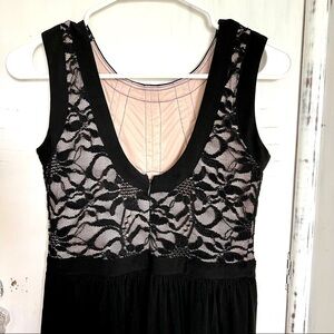 Morgan & Co. Black Swing Dress Lace Bodice with Nude Underlay Pleated Skirt 3/4