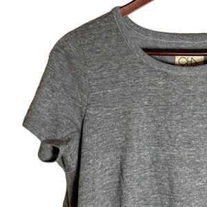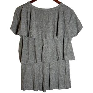 Chaser Tiered Ruffle Back Crew Neck Short Sleeve Knit Heather Gray T-Shirt M