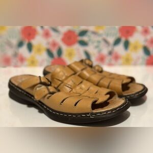 Josef Seibel Air Massage Brown Leather Slide Sandals Women’s EU 38 / US 7.5 EUC