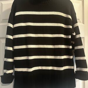 Old Navy Black and White Striped Turtleneck Sweater