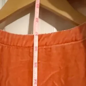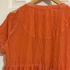 Chic coral babydoll dress by Maeve for Anthropologie. Elegant and stylish. Neck to hem measures 37 inches long and 19.5 inches armpit to armpit. The velvet is real shiny. I tried to capture the best photo of it.