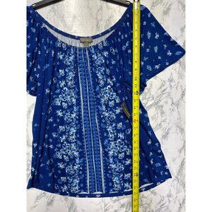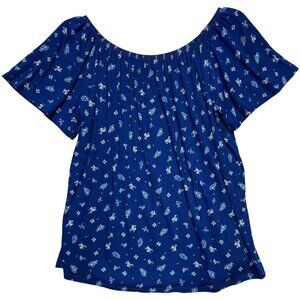 Style & Co Womens 1X Floral Off-Shoulder Knit Top Abyss Blue