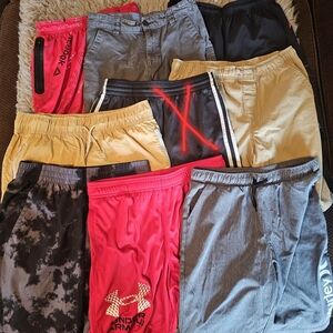 8 pairs of boys shorts. Vibrant red shorts with bold black graphics. Ideal for energetic activities. VGUC.