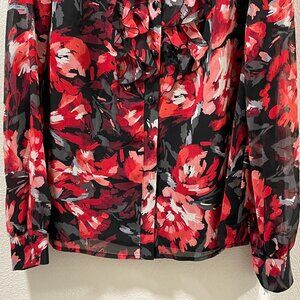 * Long sleeve button front blouse in gorgeous red/black floral
