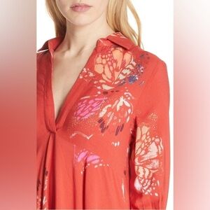 Free People Field Of Butterflies Tunic in Red - Size XS