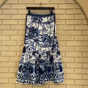 X REVOLVE House of Harlow 1960 Linen Maxi Skirt Blue Floral Size Small NWT
