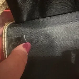 Luxurious Tarte brush set in gold and white. Includes sleek case for easy storage.