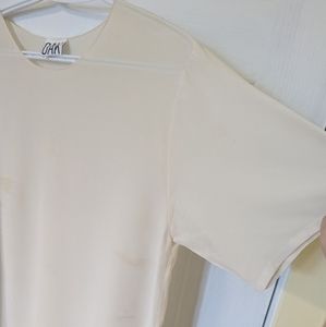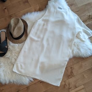 Off white Mini shift dress with one sleeve by OAK. Missing care tag, but fabric is silk. Perfect for layering or beach days!.