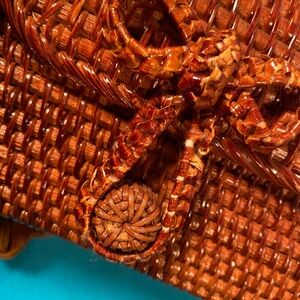 Elevate your style with this vintage wicker crossbody bag. Perfect for any occasion, it features a unique design and secure closure.
