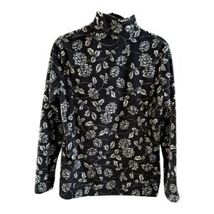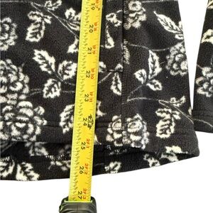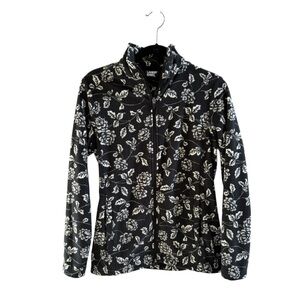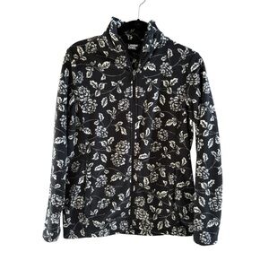Lands' End Women's Floral Full Zip Fleece Jacket Size Medium Black White Layer