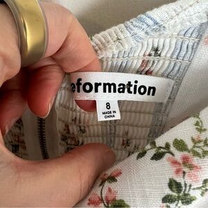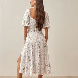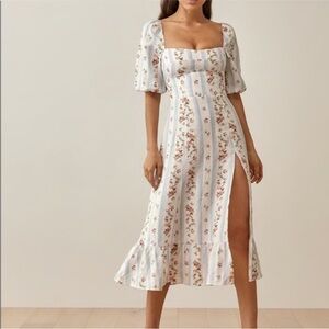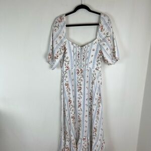 Reformation Belgium Linen Dress Surrey Floral Midi Puff Sleeves Size 8