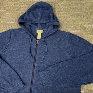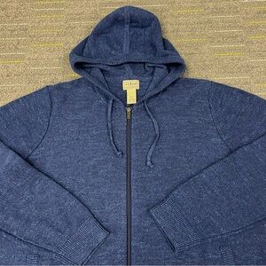 LL Bean Full Zip Hoodie Mens XL Regular Blue Drawstring Pockets Organic Cotton