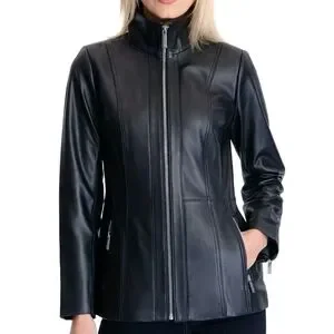 Elevate your wardrobe with this sleek Michael Kors genuine leather jacket. Crafted from buttery-soft 100% leather, this timeless piece features a flattering tailored silhouette with vertical seaming that cinches at the waist for a polished look.