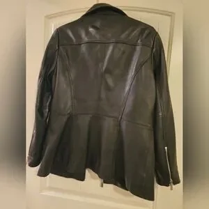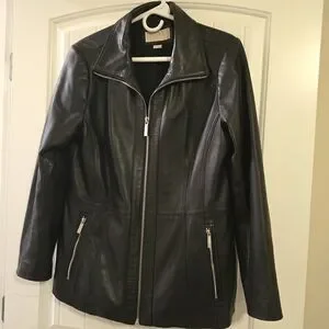 Michael Kors Black Genuine Leather Zip-Front Jacket – Size Large - EUC