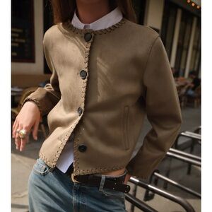NWT Zara Faux Suede Jacket with Braided Trims - Brown Taupe