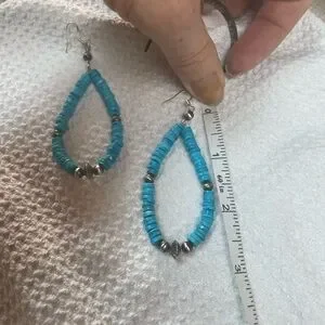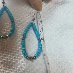 Native American style turquoise beaded teardrop earrings with sterling silver Navajo genuine Pearl beads and saucer accents. Beautiful on!