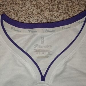 White basketball jersey with purple trim. Fanatics branding inside collar. size medium used but in great condition please refer to pictures from more detail as I have noted one little flaw.