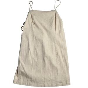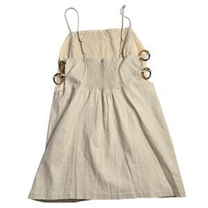 Anthropologie Neutral Smocked Linen Blend Cut Out Mini Dress with Ring Detail XL