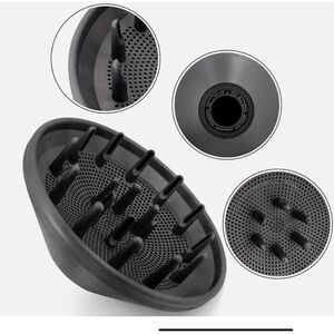 Sleek gray hair dryer diffuser attachment. Ideal for enhancing curls and reducing frizz.