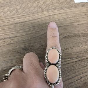 This exquisite pink conch ring by Native American artist is crafted in sterling silver. A perfect piece to enhance your jewelry collection with elegance and style.