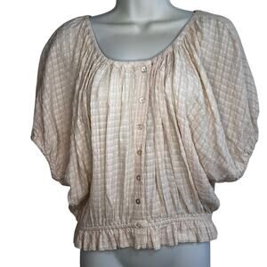 French Connection Cream Textured Dolman Sleeve Button Up Peasant Blouse Small