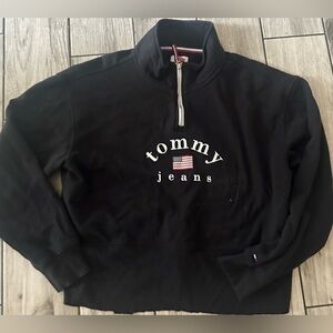 Women’s used L large size Tommy Jeans retro quarter zip pullover black