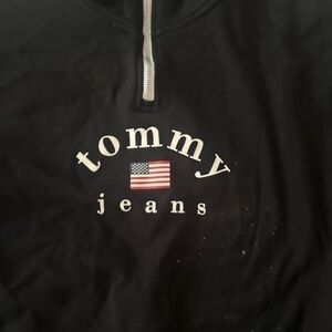 Women’s used L large size Tommy Jeans retro quarter zip pullover black Pre own items are as is any defects or errors of the item , the price has been modified to reflect. Photos with flash.