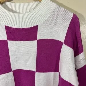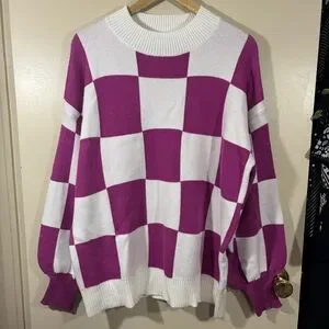 Zesica Bishop Sleeve Checkered Pink and White Women's Sweater Size XL