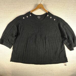 Soft Focus Womens 4X Black Knit Ribbed 3/4 sleeve Sweater Feminine Romantic Soft