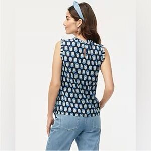 J. Crew printed linen blend ruffle neck top blouse sleeveless blue