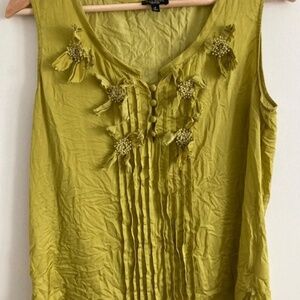 Talbots • Embellished Sleeveless Silk Blend Blouse • Chartreuse • Size 8