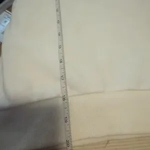 This cream sweatshirt features a relaxed, cropped fit with a ribbed crewneck and long sleeves. Made from a soft knit material, it offers a comfortable and casual style. Its minimalist design makes it a versatile addition to any wardrobe.