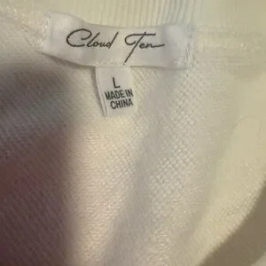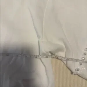 White Cream Crop Long Sleeve Sweatshirt with Pearl and Tulle Sleeves Large