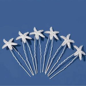 Elegant starfish hair pins adorned with sparkling rhinestones. Perfect for adding a touch of glamour to any hairstyle.