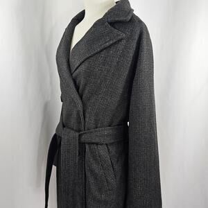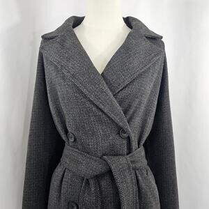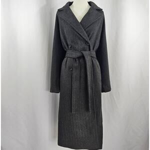 The Drop Jessy Grey Herringbone Double Breasted Long Overcoat Women's Size L
