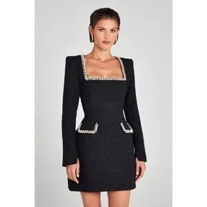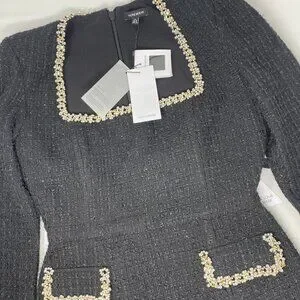 Nadine Merabi Natalie Black Tweed Dress Medium NWT $545