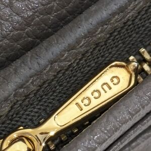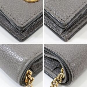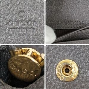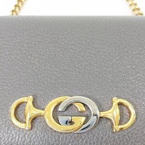 Introducing the GUCCI GG Zumi Compact Wallet Wristlet. This mini bi-fold wallet features luxurious gray leather with a two-tone logo and gold hardware, creating a sophisticated look. The gold chain can be removed, making it versatile for any occasion. Comes with a box and dustbag for safekeeping.