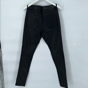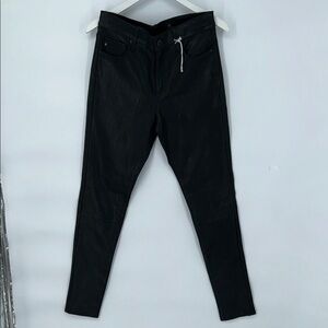 These are AG Farrah Skinny Leather Pants, not faux leather. Lamb leather + Made in Italy = premium tier.
