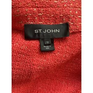 St. John Metallic Single Button Tweed Blazer Coral Size 12