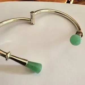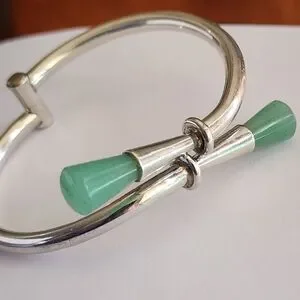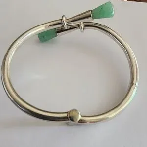 Sterling Silver Hinged bracelet Signed Mexico green Jade jewelry Fine Invest