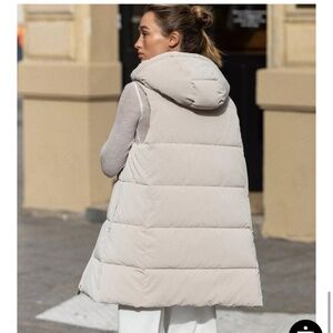 ZARA LONG PADDED HOODED PUFFER DOWN WINTER ZIP FLEECE LINING VEST GILET