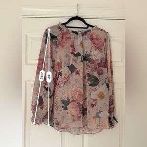 H&M Sheer Floral Blouse | Romantic Boho Ruffle Sleeve Top XL