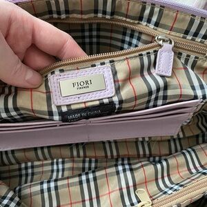 Elevate your accessory game with this stunning FIORI leather handbag. Designed with a clean, minimalist aesthetic, its elongated "baguette" style and soft lilac/mauve hue make it the perfect statement piece for any season.