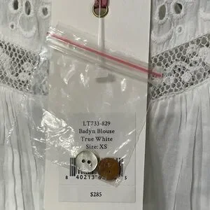 NWT LoveShackFancy Badyn Lace Inset Blouse True White - Size XS