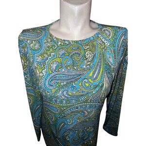 MICHAEL KORS Paisley Print Boat Neck Long Sleeve Shift Dress Women's Size M
