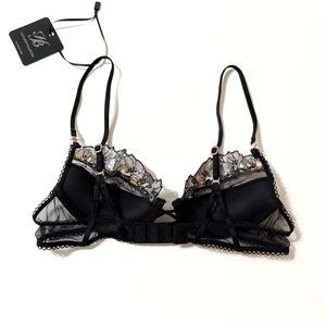 HONEY BIRDETTE RHONA BLACK FLORAL PRINT SHEER MESH PUSHUP BRA